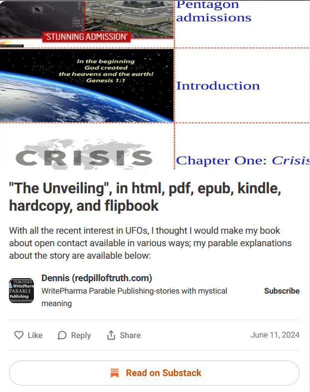 Learn more about my UFO novel by clicking the substack post below: